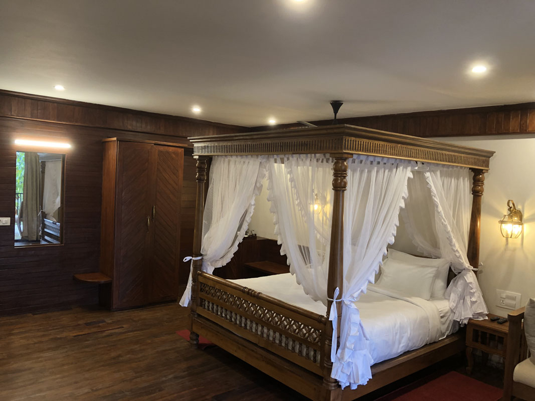 - Size (650 Sq.ft) , with queen or king bed, private bath, and balcony overlooking the plantation or valley